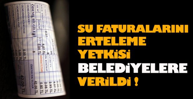 Buna göre, konutlara ve faaliyetleri durdurulan işyerlerine ilişkin su faturası borçları belediyeler tarafından 3 ay süreyle ertelenebilecek.
