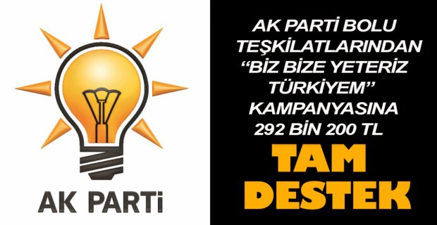 Bolu’da Cumhurbaşkanı Recep Tayyip Erdoğan'ın başlattığı, "Biz Bize Yeteriz Türkiyem" kampanyasına destekler büyürken, AK Parti Bolu İl Teşkilatından 292.200 liralık destek geldi.