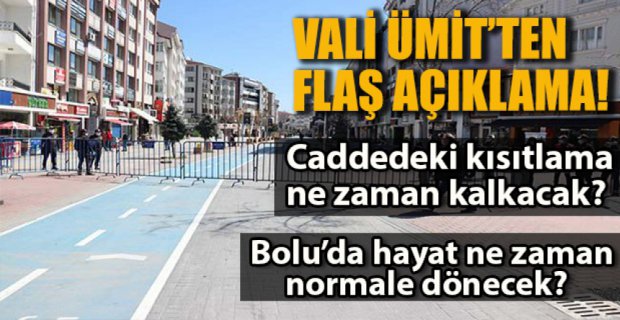Türkiye’de koronavirüs önlemlerinin 4 Mayıs'tan başlayarak Ramazan Bayramından sonra aşamalı olarak kaldırılması planlanırken, Bolu’da ise en çok merak edilen konuların başında gelen İzzet Baysal Caddesinin yaya girişine sınırlandırılmasıyla ilgili karar da 4 Mayıs’ta netlik kazanacak. Özgür Bolu Gazetesi Editörü Bülent Velioğlu'na konuşan Bolu Valisi Ahmet Ümit, "İzzet Baysal Caddesi ile ilgili kararı 4 Mayıs'ta vereceğiz ama şu anda iyi gidiyoruz. İkinci bir dalga olasılığa karşı aldığımız önlemlere devam etmeliyiz" dedi.