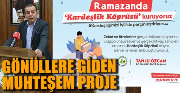 Bolu Belediye Başkanı Tanju Özcan, makamında düzenlediği basın toplantısında koronavirüs günlerinde ihtiyaç sahibi ailelerin eksikliklerini gidererek yardım ulaştırmak için ‘Kardeşlik Köprüsü’ projesi başlattığını duyurdu. Belediye, yardımda bulunmak isteyen kişilerle yardım yapılacak kişi arasında köprü olacak. Yardımda bulunmak isteyenler Bolu Belediyesi Özel Kalem Müdürlüğü’nün 0374 215 10 75 numarasını arayarak ihtiyaç sahibi kişinin iletişim bilgilerini alacak.