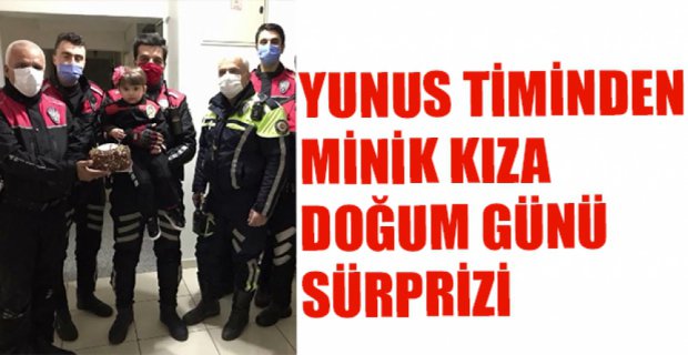 Koronavirüs günlerinde sokağa çıkmayan minik Aymira’ya polis ekipleri evlerine giderek doğum gününü kutladılar. İl Emniyet Müdürlüğü’nde görevli yunus timleri ellerinde pastayla küçük kızın Borazanlar Mahallesi Hürriyet Caddesindeki evine gittiler. Minik kızın yunus timinde görevli babası Osman İlker’in mesai arkadaşları pastanın üzerindeki mumları yakıp kapıyı çaldılar.