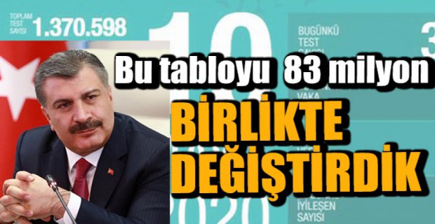Sağlık Bakanı Fahrettin Koca, "Bu tabloyu 83 milyon birlikte değiştirdik. Tedbirlere ısrarla uyarak! Mücadelemizi ciddiyetle,hiç gevşetmeden sürdürelim " ifadelerini kullandı.