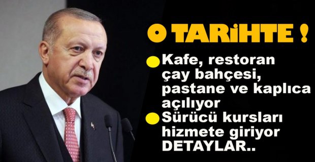 1 Haziran itibariyle Restoran, kafe, pastahane, çay bahçeleri ve kaplıca türü işletmeler belirlenen kurallar dahilinde saat 20'ye kadar hizmet vermeye başlayacak. Eğlence ve nargile mekanları bu kapsamın dışındadır. Yol güzergahlarındaki dinlenme tesisleri de 1 Haziran'da hizmet vermeye başlayacak. Sokağa çıkma kısıtlamalarının bazılarını bir müddet daha sürdürmekte fayda görüyoruz. Plajlar, milli parklar ve bahçeler belirlenen kurallar dahilinde 1 Haziran'dan itibaren faaliyete geçebilecek. Müze ve ören yerleri, 1 Haziran'da onlar da açılıyor.