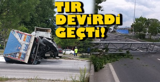 Tır sürücüsü kazayı hafif yaralı şekilde atlatırken, o sırada yoldan başka bir aracın geçmemesi olası bir faciayı önledi.