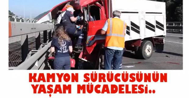TEM Otoyolu’nun Bolu Dağı Tüneli Viyadükleri üzerinde kamyonun bariyerlere çarpması sonucunda araçta sıkışan sürücü ağır yaralandı.
