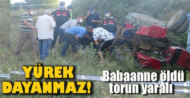 Bolu'da 13 yaşındaki çocuğun kullandığı traktör devrildi. Buğday yüklü traktörün şarampole devrilmesi sonucu babaanne hayatını kaybetti, torunu yaralandı.