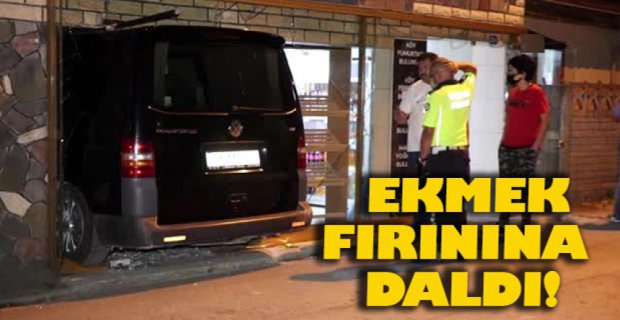 Bolu'da, sürücüsünün direksiyon hakimiyetini kaybettiği minibüs, ekmek fırınının camından içeri girdi. Kazada yaralanan olmadı.