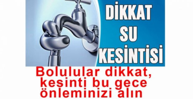Bolu Belediyesi’nden yapılan açıklamada, " Şehrimizin içmesuyu şebeke hattında 700 mm'lik CTP boru hattında meydana gelen arıza nedeniyle 25 Ağustos 2020 saat 05.00'e kadar Çakmaklar, Alpagut, Yaşamkent, Umutkent, Kılıçaslan, Paşaköy, Kasaplar, Sandallar, Seyit Mahallelerinde su kesintisi yaşanacaktır. Onarım çalışmasının en kısa sürede tamamlanması için Fen İşleri Müdürlüğüne bağlı ekiplerimiz çalışmalarını aralıksız sürdürmektedir. Halkımıza önemle duyurulur” ifadeleri yer aldı.