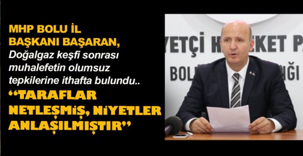 MHP Bolu İl Başkanı Cihan Başaran, Sakarya’da bulunan doğalgaz rezervi sonrası ülke içindeki muhalefet tarafından olumsuz dönütler aldıklarını belirterek, “Dışarıda Türkiye düşmanlarının üzüntülerini ve endişelerini anlayabiliriz ancak ülke içinde muhalefetin bu konuda olumlu bir görüş bildirmeyişini anlayamıyoruz. Kaynak Türk milletinin kaynağıdır. Bu kaynaktan bir gelir elde edilecekse, bu gelir hepimizin geliridir. Bu gaz kaynağı ile yeni bir başlangıç ve bir gelecek yazarsak, gelecek hepimizindir. O zaman sevincimiz de ortak olmalıydı” dedi.
