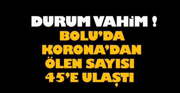 Bolu’da korona virüs vakaları hızla artmaya devam ediyor. Alınan bilgiye göre, 9 vatandaşımız daha korona virüs nedeniyle hayatını kaybetti. Korona virüs tedbirlerine yeterince uyulmaması nedeniyle il genelinde vaka ve ölüm sayıları yükselmeye devam ederken, hastanelerdeki yoğunluk da artmış durumda. Son ölümlerle birlikte Bolu'da korona virüs sebebiyle hayatını kaybedenlerin sayısı 45’e yükseldi.
