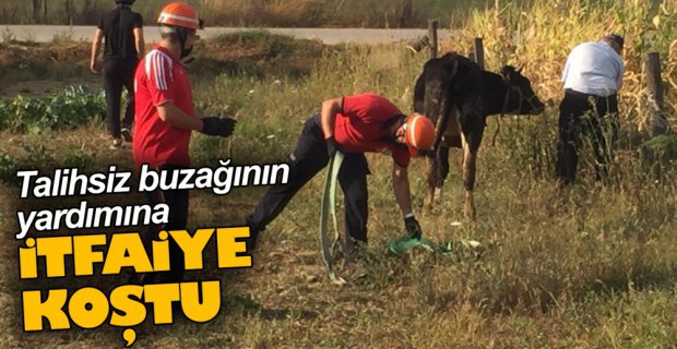 Bolu'da sulama kanalına düşen buzağı itfaiye ekipleri tarafından kurtarıldı.
