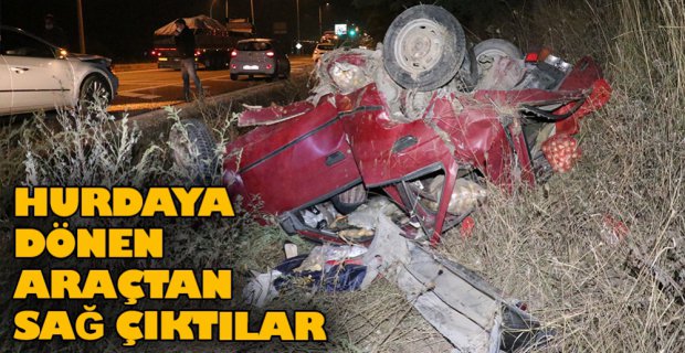 Bolu'da D-100 kara yolunda, bir başka otomobille çarpıştıktan sonra şarampole devrilen ve hurdaya dönen araçta bulunan çift, kazayı hafif sıyrıklarla atlattı.