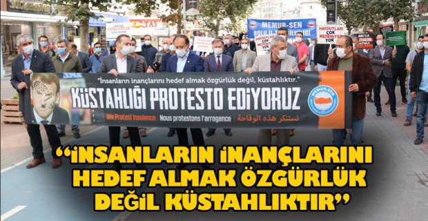 Memur-Sen, 81 ilde yaptığı eş zamanlı basın açıklamasıyla Fransa Cumhurbaşkanı Emanuel Macron’un peygamberimiz Hz. Muhammed Mustafa hakkında yapılmış karikatürlere sahip çıkmasını ve Müslümanları aşağılamasını protestesto etti. Memur-Sen Bolu İl Temsilcisi Ahmet Koçak, “Hemen belirtelim ki; insanlığın inançlarını hedef almak özgürlük değil, küstahlıktır" dedi.