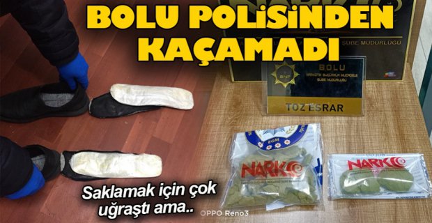 Bolu'da, ayakkabı tabanında toz esrar ele geçirilen şüpheli gözaltına alındı.