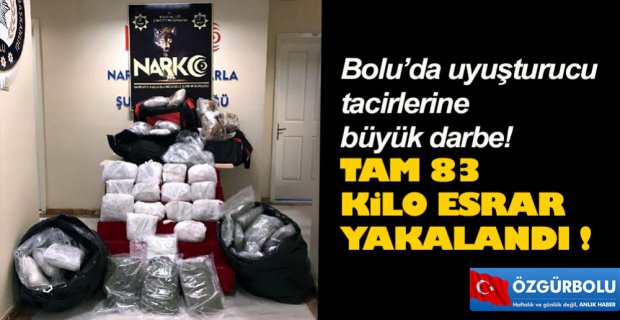 Bolu’da narkotik ekiplerinin TEM Otoyolu’nda yaptıkları uyuşturucu operasyonunda 83 kilo 550 gram esrarla yakalanan 4 kişiden 1’i tutuklandı.