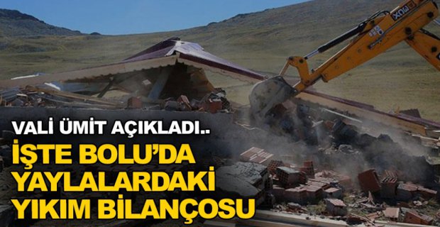 Bolu’da yaylalardaki kaçak yapılar ile hayvanların otlayacağı meraların çitlerle çevrilmesinin ardından başlatılan soruşturma kapsamında ekipler tarafından çok sayıda yaylada yıkım işlemi yapıldı. Bolu Valiliği’nin talimatıyla Bolu Belediyesi ve İl Özel İdaresi aracılığıyla yaylalarda belirlenen kaçak yapılar iş makineleriyle yıkıldı.