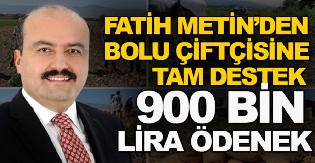 Tarım ve Orman Bakan Yardımcısı Fatih Metin, yılın son haftasında Bolu çiftçisi için kullanılmak üzere 900 bin lira ödenek gönderdi.