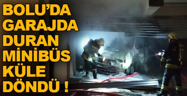 Bolu’da apartmanın kapalı garajında park halindeki minibüs yanarak küle döndü.