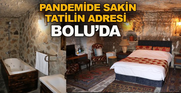 Bolu'nun Seben ilçesinde 3 bin 200 yıl önce Frigler tarafından yapılan ve bugüne kadar ulaşan Solaklar Kaya Evleri'nde tatil yapan ziyaretçiler, salgın döneminde kalabalıktan uzakta geçmişe yolculuğa çıkıyor.