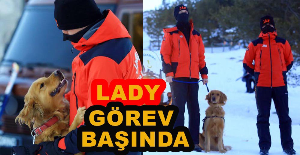 Ekiplerle birlikte kar kalınlığının yer yer iki metreye ulaştığı bölgelerde kaybolan tatilcilerin bulunması için görev yapan özel eğitimli köpek Lady, JAK timinin en büyük yardımcısı oldu.
