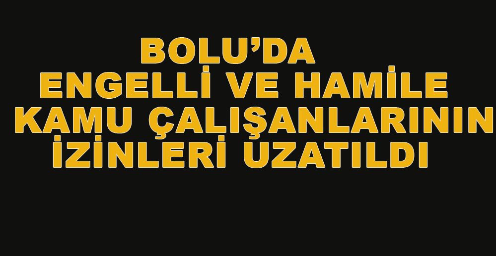 Kentte etkili olan kar yağışı ve buzlanma nedeniyle iki gündür idari izinli olan engelli ve hamile kamu çalışanlarının izinleri bir gün daha uzatıldı. Bolu Valisi Ahmet Ümit, sosyal medya hesabından, “İlimiz genelinde kar yağışı ve buzlanma devam ettiğinden Bolu il genelinde kamuda çalışan engelli ve/veya hamile personelin 17 şubat günü de idari izinli sayılmaları uygun görülmüştür. “ açıklamasında bulundu.