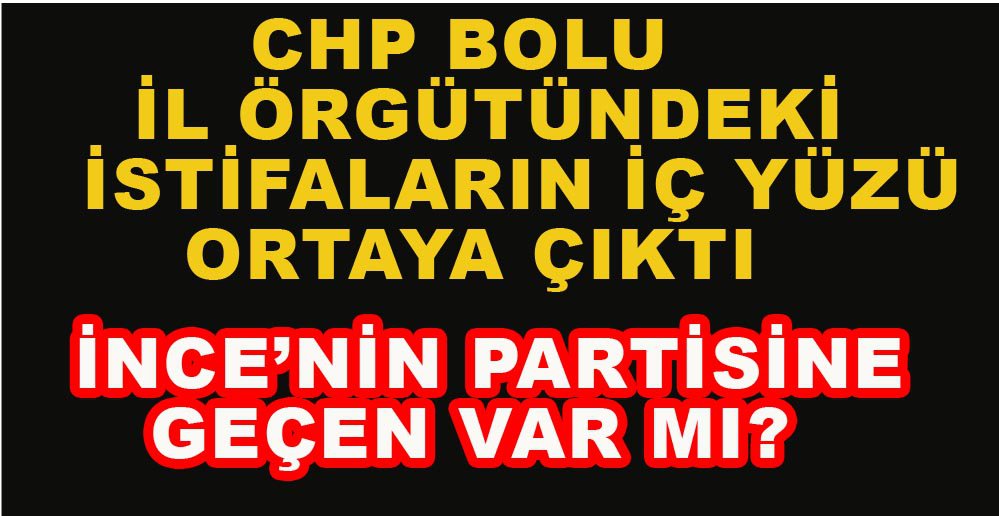 CHP Bolu il örgütünde bazı isimlerin Muharrem İnce’nin kurduğu yeni partiye geçecekleri için partilerinden istifa ettikleri haberlerinin gerçeği yansıtmadığı öğrenildi. Bolu Belediye Başkanı Tanju Özcan’ın belediyede partili çalışan istemediği gerekçesiyle az sayıda kişinin CHP’den istifa ettiği öğrenildi.