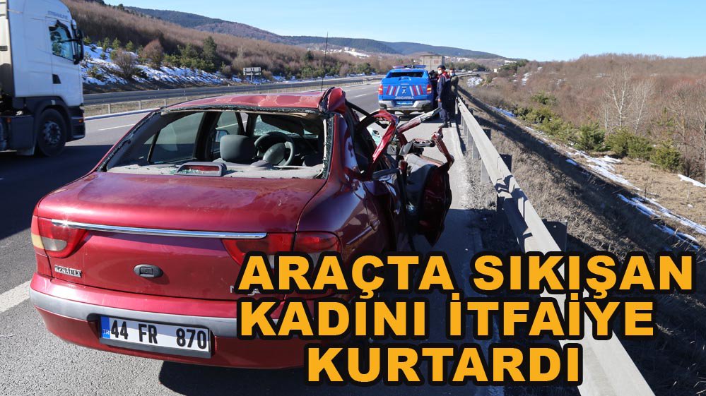 Anadolu Otoyolu'nun Bolu kesiminde otomobilin tıra çarpması sonucu 1 kişi yaralandı. Otomobilde sıkışan kadın itfaiye ekipleri tarafından kurtarıldı.