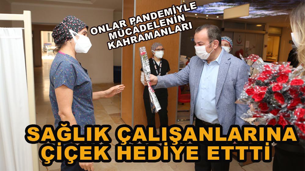 Bolu Belediye Başkanı Tanju Özcan 14 Mart Tıp Bayramı nedeniyle kentteki hastaneleri gezerek sağlık çalışanlarına çiçek hediye etti.