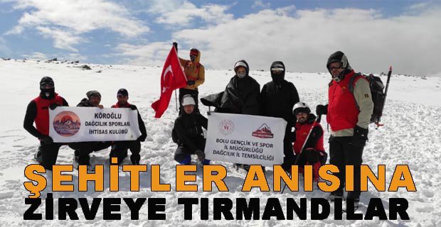 Bolu Gençlik ve Spor İl Müdürlüğü Dağcılık İl Temsilciliği ile Köroğlu Dağcılık ve Doğa Sporları İhtisas Kulübü sporcuları 18 Mart Çanakkale Zaferi ve Şehitleri Anma Günü anısına Kaz dağlarına zirve tırmanışı yaptı. Dağcılar zorlu koşullarda karla kaplı alanları aşarak Kaz dağlarının zirvesine ulaştı. Güneydoğu gazisi kulüp üyesi Mutlu Gümez’de zirve tırmanışına katıldı. Zirveye tırmanmayı başaran 10 sporcu Kaz dağlarının zirvesine Türk bayrağı dikti.
