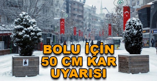 Bolu Valiliği, Meteoroloji İl Müdürlüğü’nün yaptığı duyuruda cuma günü 50 cm’yi bulacağı tahmin edilen kar yağışı ile ilgili vatandaşları uyardı.