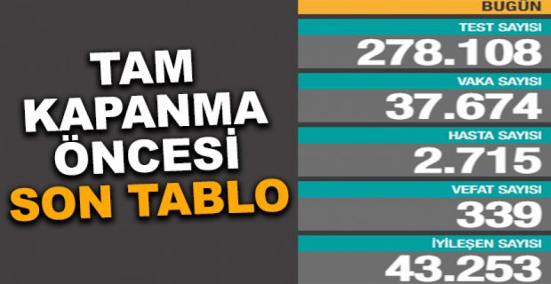 GÜNLÜK KORONAVİRÜS TABLOSU AÇIKLANDI