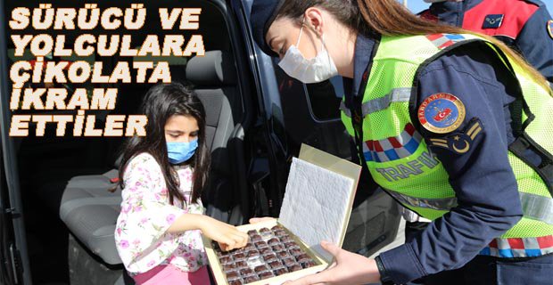 Bolu'da yeni tip koronavirüs (Kovid-19) tedbirleri kapsamında denetim yapan jandarma ve polis ekipleri, durdurdukları araçların sürücülerine Ramazan Bayramı dolayısıyla çikolata ikramında bulundu.