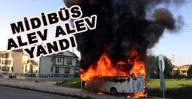 Bolu'da park halindeyken bir anda alev alan midibüs tamamen yanarak kullanılmaz hale geldi.