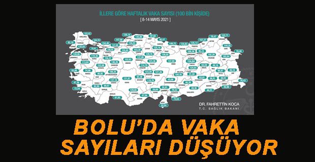 Koronavirüs önlemleri kapsamında 29 Nisan’dan başlayarak Ramazan bayramının da içerisinde bulunduğu 18 günlük kısıtlamayla birlikte vaka sayılarında düşüşler başladı. Bolu’da da vaka sayıları her geçen hafta ciddi oranda düşmeye başladı. Kentte 1-7 Mayıs arasında 100 binde 282.72 olan vaka sayısı Sağlık Bakanlığı tarafından açıklanan son verilere göre 8-14 Mayıs arasında 100 binde 155.65’e düştü.