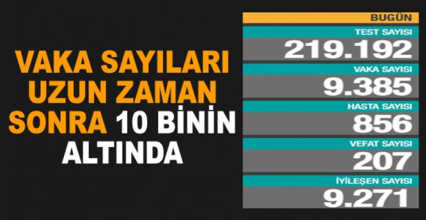 Vaka sayıları 9 bin 385'e düştü. Bununla beraber toplam vaka sayısı 5 milyon 160 bin 423 oldu. Gün içinde koronavirüs nedeniyle hayatını kaybedenlerin sayısı 207 oldu. Bugün iyileşen 9 bin 271 kişiyle beraber toplam iyileşen kişi sayısı 4 milyon 989 bin 787 oldu. Ağır hasta sayısı ise 2 bin 41 olarak belirlendi.