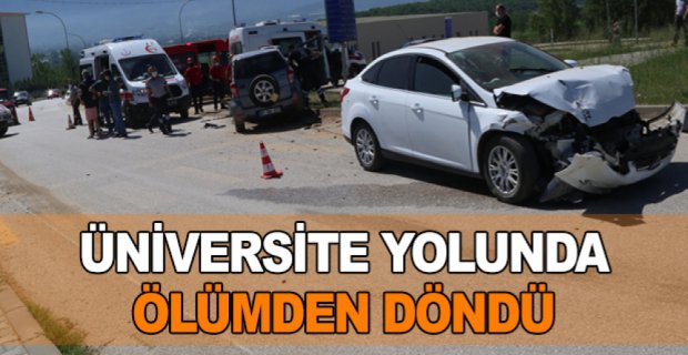 Alınan bilgiye göre, Murat K. idaresindeki 14 ES 881 otomobil ile Ayşe Y. yönetimindeki 81 BA 671 plakalı cip, kapalı yüzme havuzu kavşağında çarpıştı. Kazada araçlar hurdaya döndü. Hurdaya dönen cipte sıkışan Ayşe Y. olay yerine gelen sağlık ekiplerince bulunduğu yerden, uğraşlar sonucu çıkarılarak ambulansa taşındı. Kazada yaralanan sürücü ile otomobildeki Remziye K. sağlık ekiplerinin ilk müdahalesinin ardından İzzet Baysal Eğitim ve Araştırma Hastanesi Acil Servisine kaldırıldı.