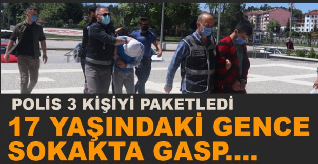 Bolu’da 17 yaşındaki E.E. isimli gence silah göstererek cep telefonunu gasp eden 3 kişi düzenlenen operasyonla yakalanarak ifadelerinin ardından adliyeye sevk edildi.