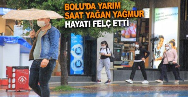 Bolu'da Meteoroloji Müdürlüğü'nün uyarılarının ardından, sağanak yağmur bastırdı. Güneşli saatlerden sonra bir anda bastıran yağmur vatandaşları zor duruma soktu. Yoğun yaşanan yağmur nedeniyle birçok yer sular altında kaldı.
