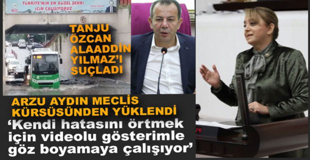 AK Parti Bolu Milletvekili Arzu Aydın, sağanak yağmurların ardından kentte yaşanan su taşkınlarına ilişkin Bolu Belediye Başkanı Tanju Özcan, AK Parti’li eski belediye başkanı Alaaddin Yılmaz’ı suçlamasına meclis kürsüsünden tepki göstererek, “Kendi hatasını örtbas etmek için videolu gösterimlerle eski yönetimi suçlayarak göz boyamaya çalışan ve 2 buçuk senedir bunu adet haline getiren Bolu Belediye başkanının şikayet etmekten vazgeçerek çalışmaya davet ediyorum” dedi.
