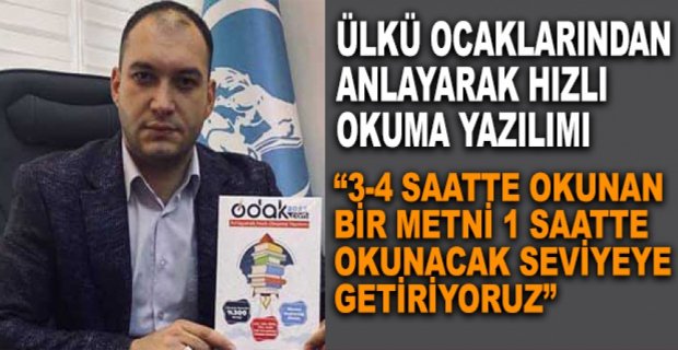 Ülkü Ocakları Eğitim ve Kültür Vakfı ‘Odak2023 Anlayarak Hızlı Okuma Yazılımı’ geliştirdi. Ülkü Ocakları Eğitim ve Kültür Vakfı Bolu İl Başkanı Cihan Özkalem, Odak2023 Anlayarak Hızlı Okuma Yazılımı'nın ilk etapta 10 bin öğrenciye ücretsiz dağıtıldığını açıkladı. Özkalem, “3-4 saatte okunan bir metni 1 saatte okunacak seviyeye getiriyoruz” dedi.