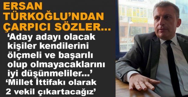 CHP Bolu Merkez İlçe Başkanı Ersan Türkoğlu, “Milletvekilliği aday adaylığı sürecinde parti içinde bölünmeler olacağını düşünmüyorum. Herkes aday adayı olabilir. Ancak aday adayı olacak kişiler kendilerini ölçmeli ve başarı olup olmayacaklarını iyi düşünmeliler. Hiç kimse kendine 'ben başarısız olurum' demez ama somut veriler var” dedi.