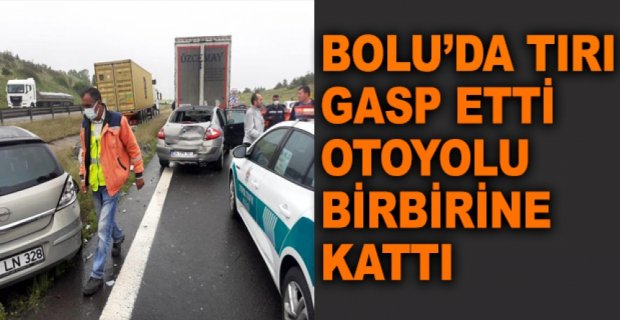 Anadolu Otoyolu'nun Bolu kesiminde otostop yaparak tır gasbederek jandarmanın "dur" ihtarını uymayıp 2 tır, 1 kamyon ve 3 otomobile çarpan şüpheli gözaltına alındı.