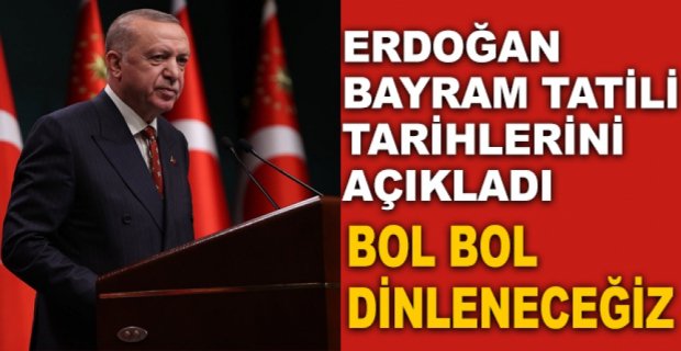Cumhurbaşkanı Erdoğan, Kurban Bayramı tatiliyle ilgili açıklamalarda bulundu. Erdoğan, "16 Temmuz Cuma akşamından 26 Temmuz Pazartesi gününe kadar sürecek" dedi.
