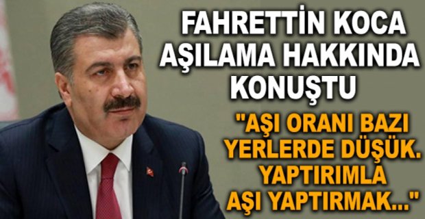 Koca, en az bir doz aşısını yaptırmış olan 18 yaş ve üzeri olarak tanımlanan kişilerde aşılama oranının yüzde 70 olmasını hedeflediklerini, şu an bu rakamın yüzde 61'leri bulduğunu aktardı. Son dönemde özellikle Çarşamba Günü’nden itibaren düşmesi gereken vakaların düşmediği, hafta sonu bir önceki hafta sonuna göre yüzde 20'lere yakın bir artış olduğunu gördüklerini dile getiren Koca, "Vaka sayılarında beklediğimiz düşüşün olmadığını ve bir çıkış olma ihtimalini görüyoruz. Özellikle bu artışlar daha çok aşılama oranının düşük olduğu yerlerde kendisini gösteriyor. Diyarbakır, Şırnak, Adıyaman gibi bazı illerimizde, Doğu ve Güney Doğu'da, daha doğrusu genel olarak aşılamanın düşük olduğu yerlerde bir artışın olduğunu görüyoruz. O nedenle bayrama kadar o bölgelerde daha yoğun aşılama gerekiyor" dedi.