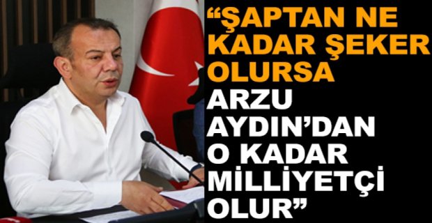 Bolu Belediye Başkanı Tanju Özcan, 17 Temmuz Atatürk’ün Bolu’ya geliş yıldönümü nedeniyle düzenlenecek olan halk konserine tepki gösteren AK Parti Bolu Milletvekili Arzu Aydın’a sert sözlerle cevap vererek, “Şaptan ne kadar şeker olursa Arzu hanımdan da o kadar milliyetçi olur” dedi.