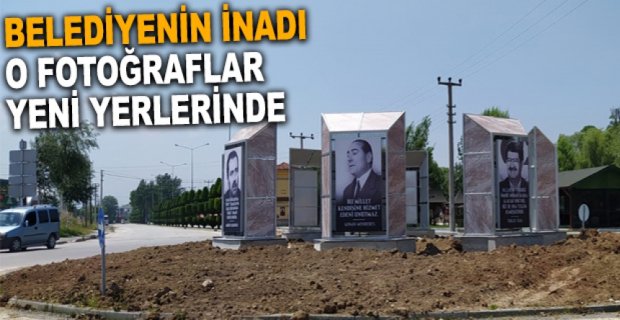 Bolu’da Paşaköy alt geçidinde Karayolları Genel Müdürlüğü tarafından duvarlardan silinen devlet büyüklerinin resimleri Bolu Belediye ekipleri tarafından yeni bir tasarımla kent merkezindeki başka bir kavşağa konuldu.