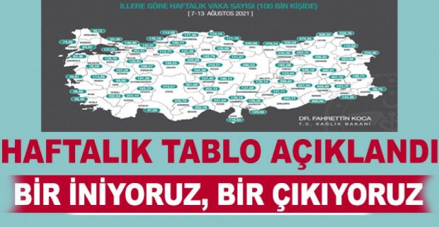 Sağlık Bakanı Fahrettin Koca Ağustos Ayının 7-13 tarihleri arasında bulunan haftalık vaka tablosunu açıkladı. Geçtiğimiz haftaya göre vaka sayısında düşüş yaşandı.