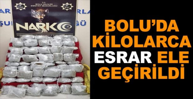 Bolu İl Emniyet Müdürlüğü Narkotik Suçlarla Mücadele Şube Müdürlüğü ekiplerince, uyuşturucu madde bulundurma ve ticaretinin önlenmesine yönelik yapılan çalışmalar sırasında durumundan şüphelenilen bir araç durdurularak arandı. Araçta yapılan aramada bagaj kısmında 70 paket, 20 kilo 600 gram esrar maddesi ve 1 adet Ruhsatsız tabanca, tabancaya takılı vaziyette bulunan şarjör içerisinde 4 adet mermi ele geçirildi. Araçta bulunan M.E isimli şahıs Uyuşturucu madde ticareti suçundan adliyeye sevk edildi.