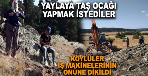 Kıbrıscık ilçesinde bulunan Ayman yaylasındaki köylülerin hayvanlarını otlattıkları Karaköse mevkiinde ki merada taş ocağı için çalışma başladığını gören vatandaşlar, iş makinesinin önüne geçerek çalışmayı durdurdular.
