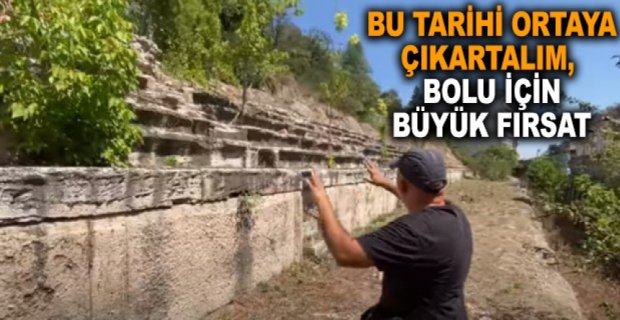 “Tam burasının karşısında bir yol var. Orası tam hipodromun ortası. Burası çok kötü bir vaziyette. Burası bize yakışmıyor. Burasının kazılarını tamamlayalım. Yolu da tamamen kazanıp bütün tarihi ortaya çıkaralım. Yetkililere sesleniyorum. Bu bize yakışmıyor. Burasını tamamladığımız zaman buraya turist akar. Kıyamet kadar turist akar. Bolu’nun kalbinde bir hazine yatıyor. Sultanahmet Meydanı’nın aynısı ve burasının dokusu bozulmamış. Burada hepsi duruyor. Lütfen burayı ayağa kaldıralım”